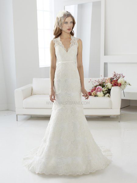 The Val Stefani line includes a collection of bridesmaid dresses, and a formal gown line called Celebrations (the perfect choice for mothers of the bride or groom) a cocktail dress line, and the sister bridal gown line, Moonlight Bridal. The Val Stefani Fall 2013 collection has so many beautiful gowns to choose from. If your dream wedding dress should include plenty of romantic and gloriously lady-like touches, a Val Stefani gown may be the one for you!